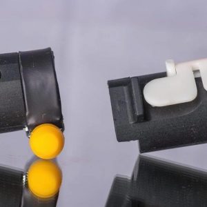 Außerdem besitzt dieses Übungsmittel einen orangefarbenden Silikonhalter für den kleinen Finger der linken Hand, der als Hilfsmittel vorgesehen ist, um eventuelle Fehler durch falsche Fingerhaltung zu vermeiden und die Finger zu den richtigen Griffen zu führen. Gleichzeitig bedeckt er die verstellbare Schraube zur Befestigung.
