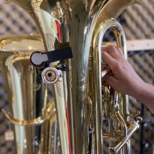 – Befestigen Sie den Aurus 9WA an Ihren Blasinstrument in der nähe des Mundstückes.